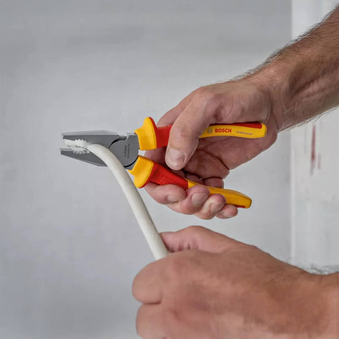 - หุ้มฉนวน เรียบง่าย ใช้สะดวก – ชุดคีม VDE จาก Bosch Professional (3 ชิ้น)