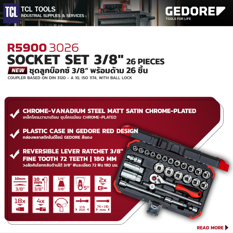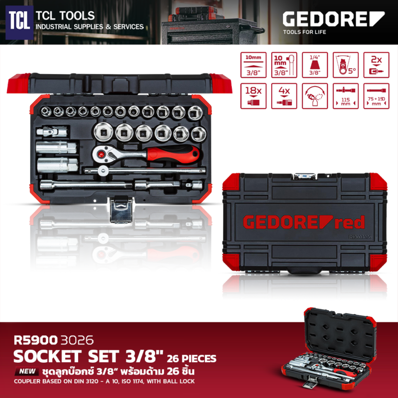 Gedore Red ชุดลูกบล็อก 1/2″ พร้อมด้าม รุ่น R69003024